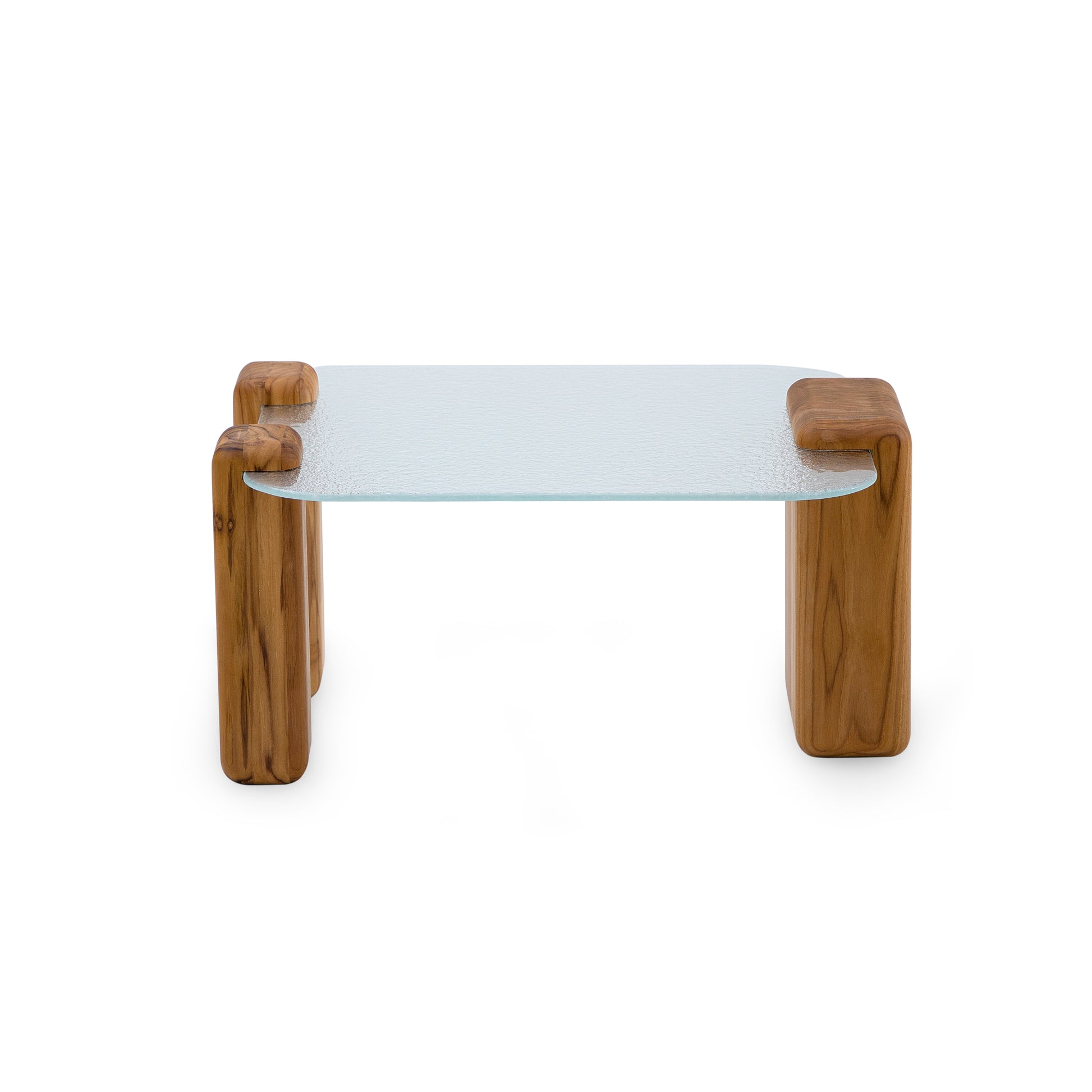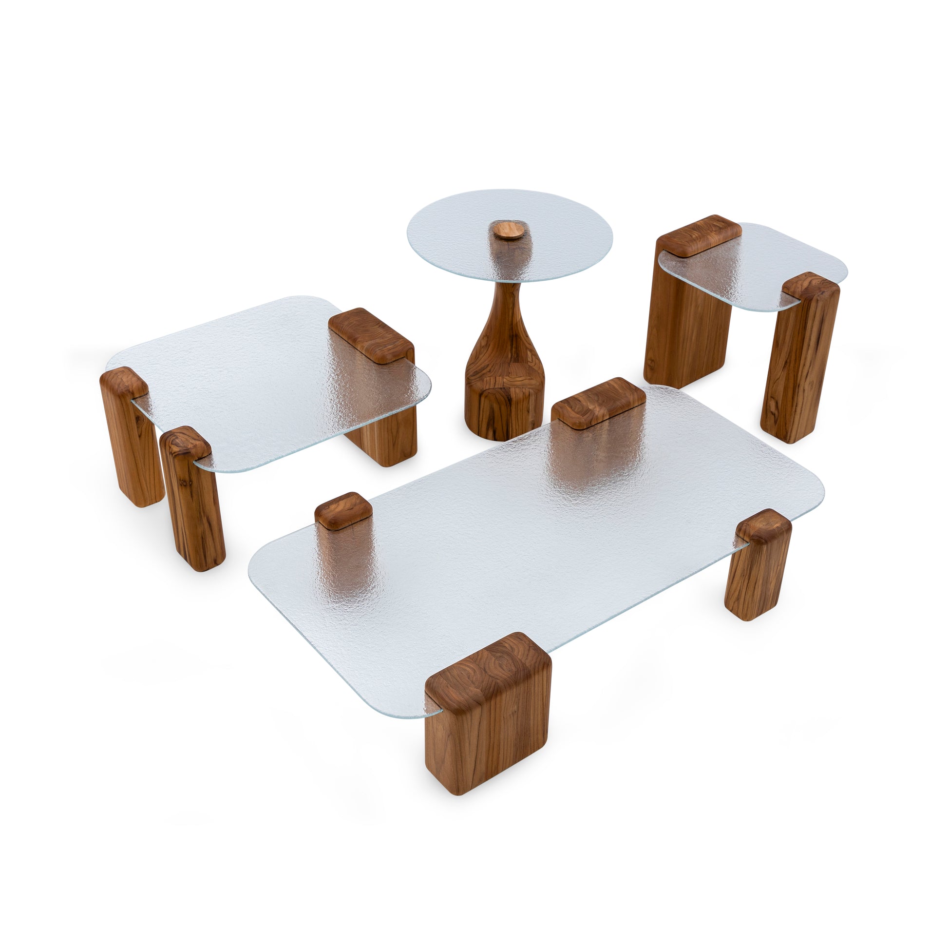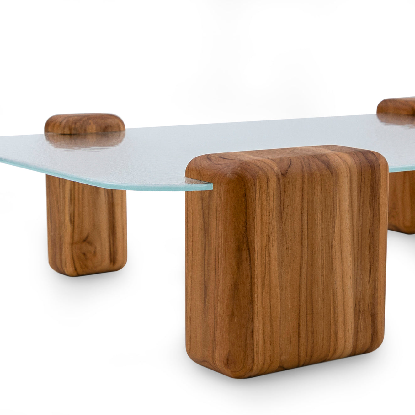 Inspired by the emblematic Inhotim Museum, its feet carved in solid wood blocks not only evoke admirable structural stability, but also capture the organic forms found in Inhotim's buildings and installations.