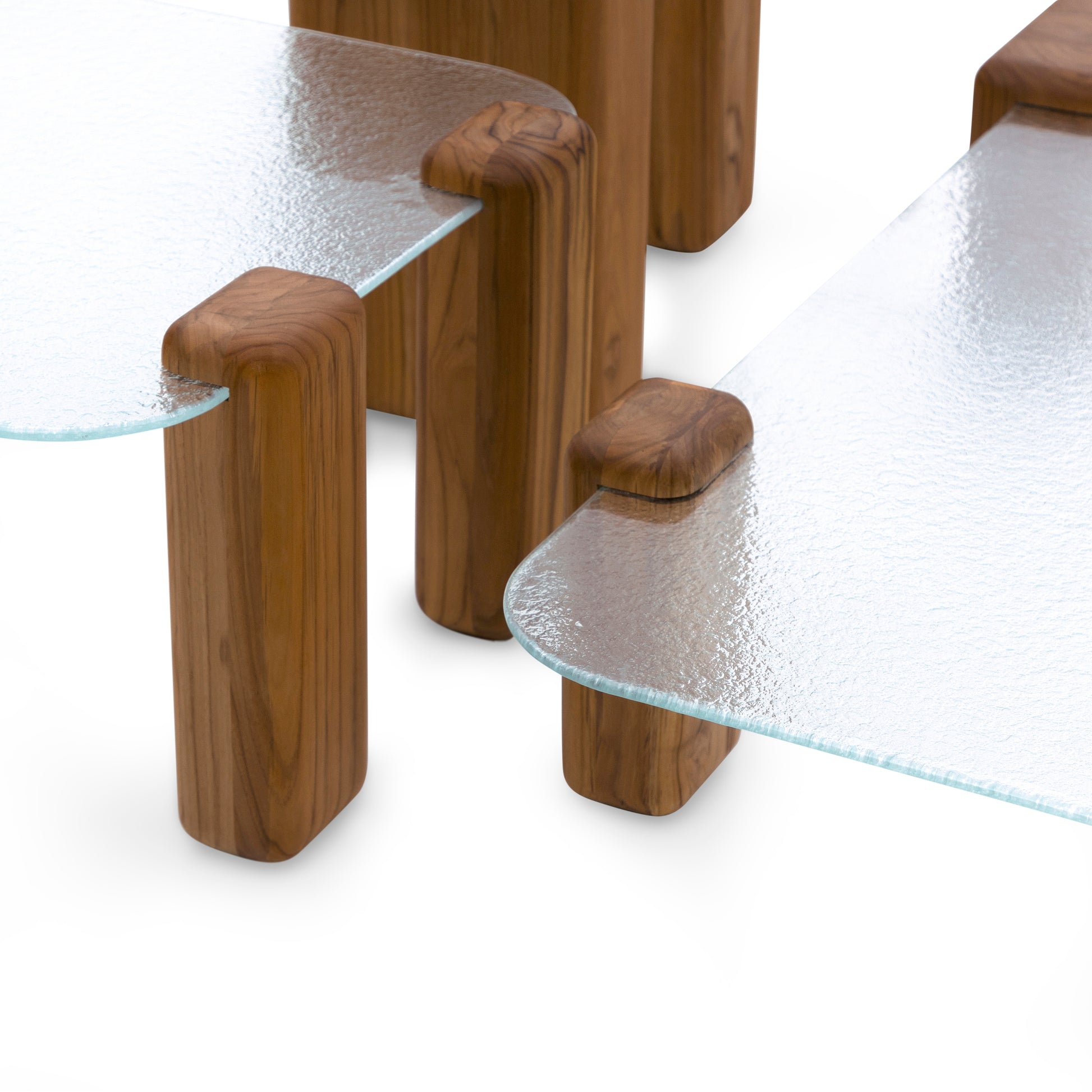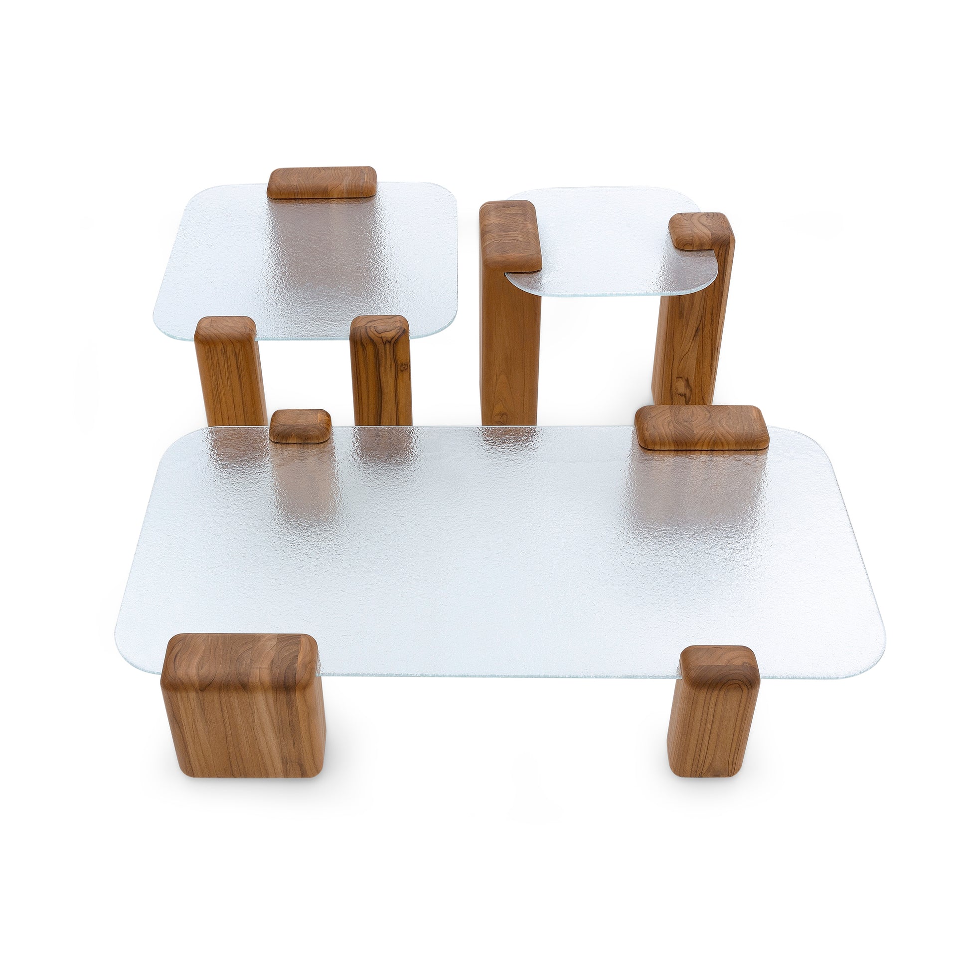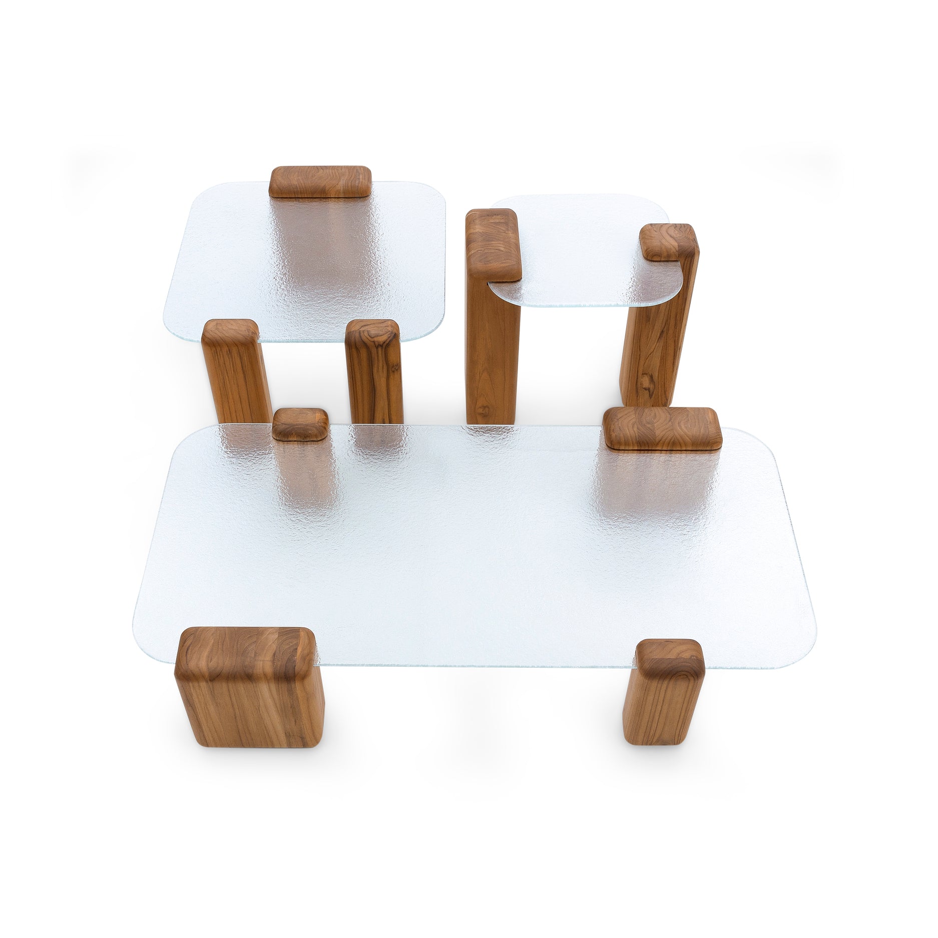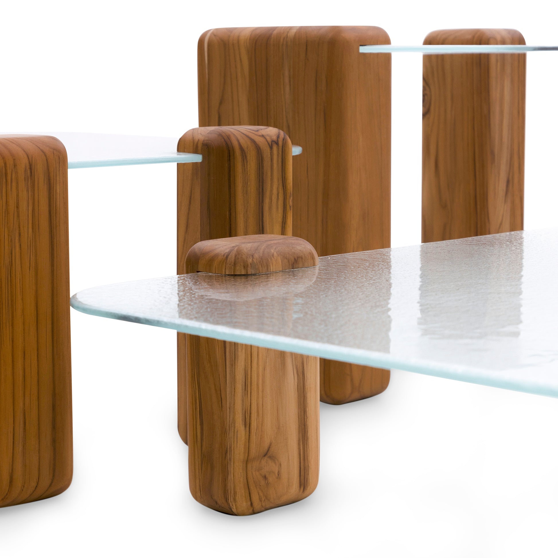 Inspired by the emblematic Inhotim Museum, its feet carved in solid wood blocks not only evoke admirable structural stability, but also capture the organic forms found in Inhotim's buildings and installations.