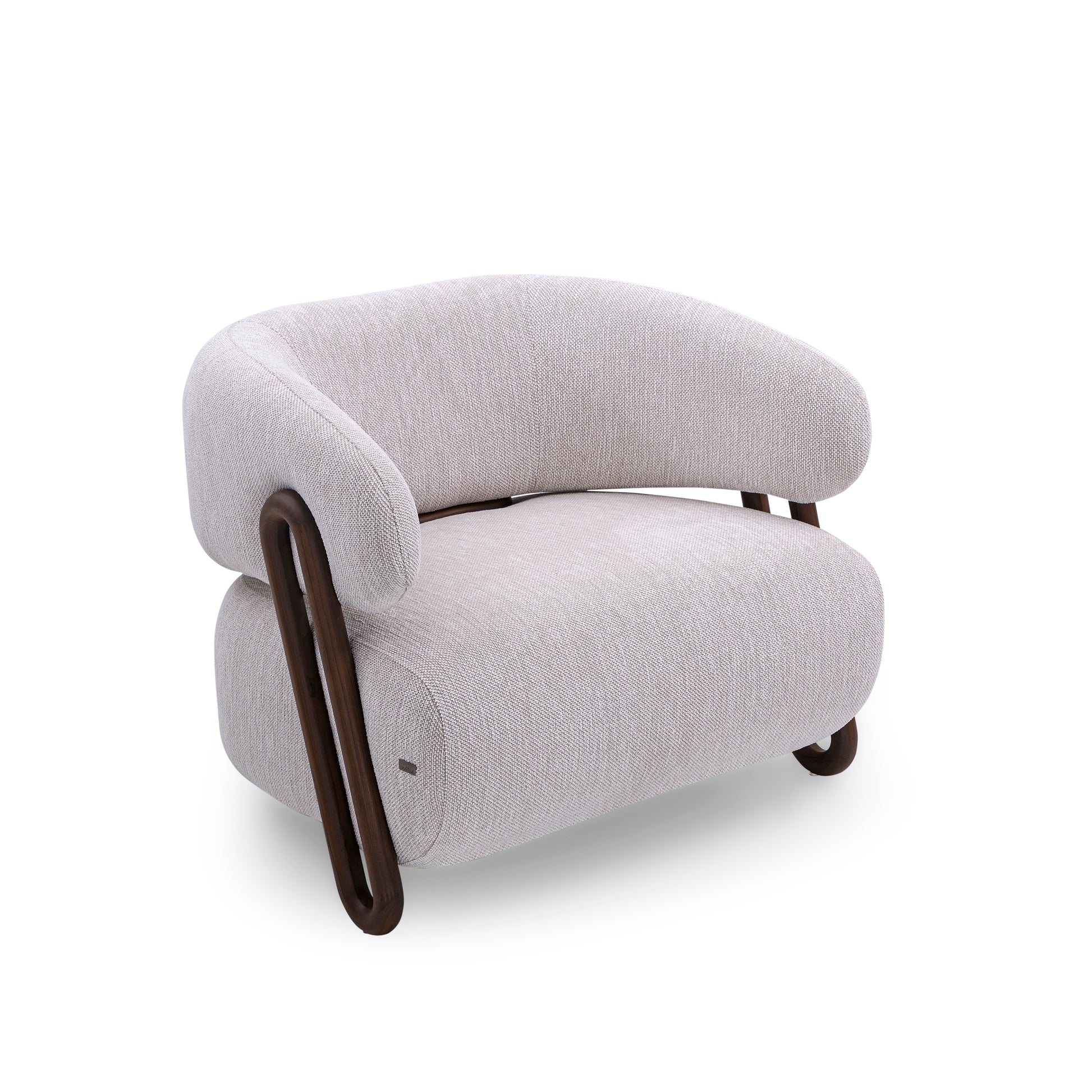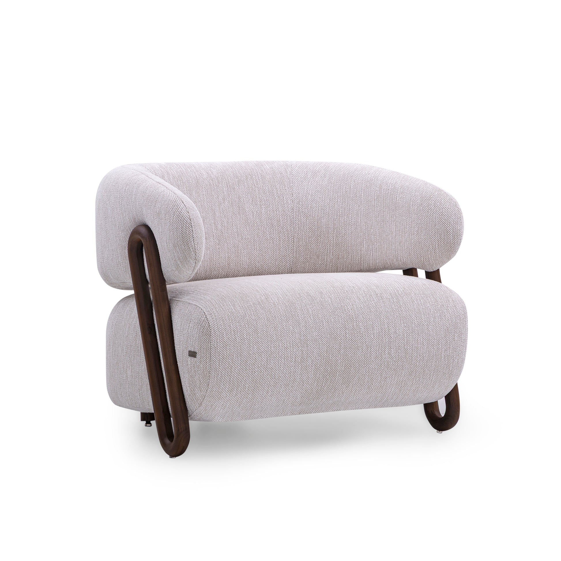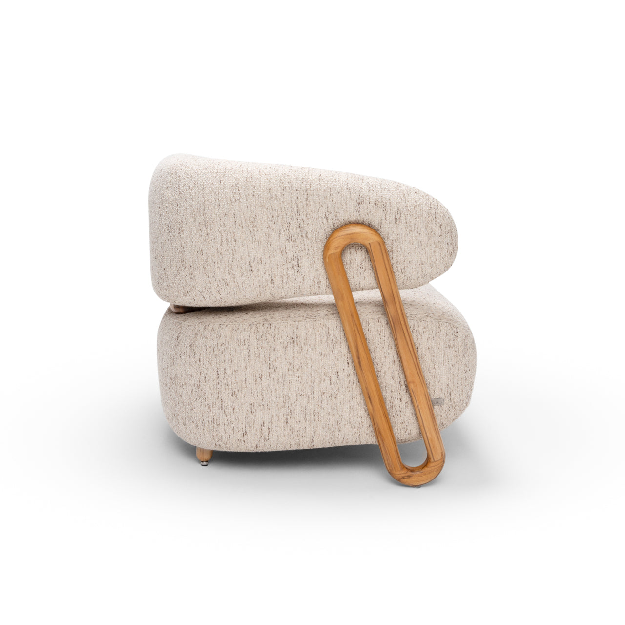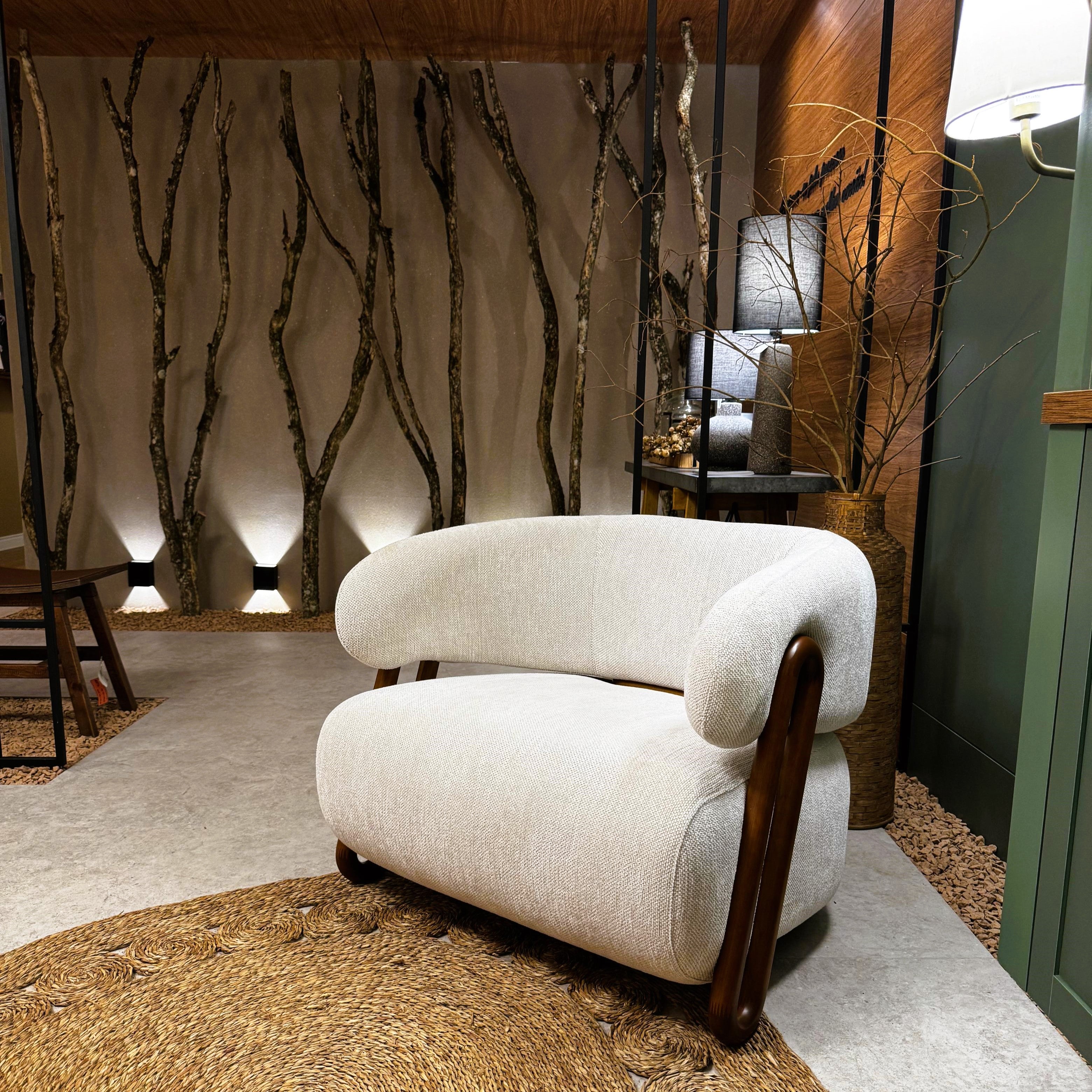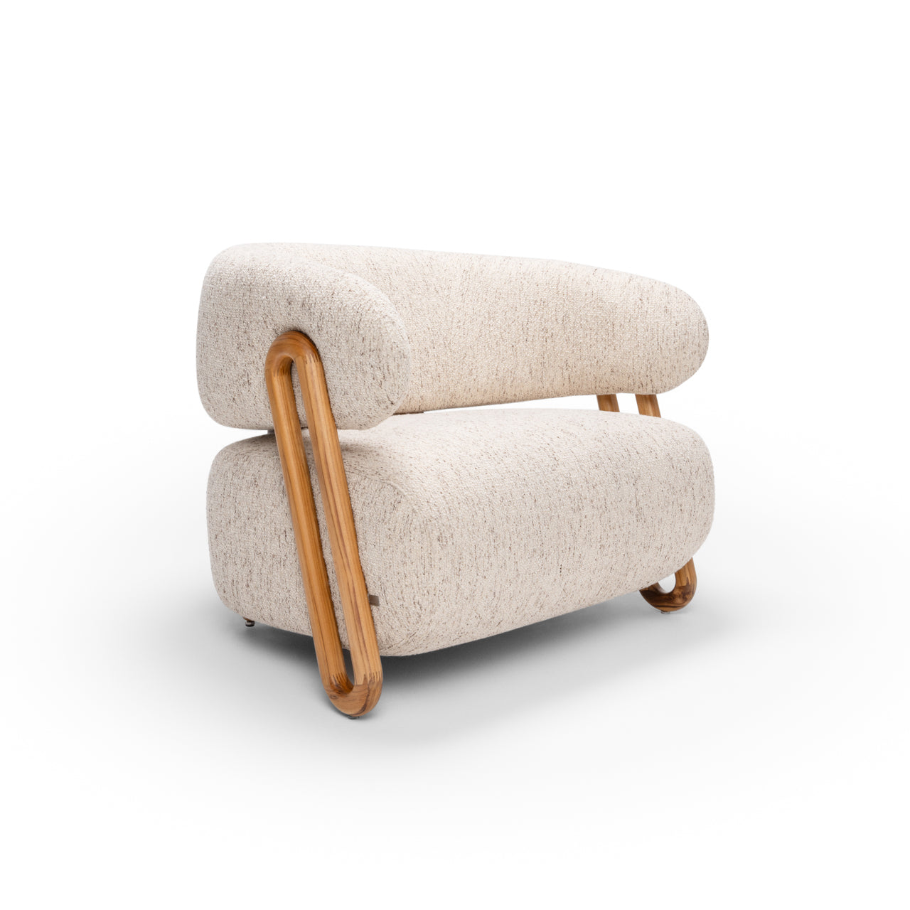 The armchair features a design that evokes the elegance and strength of ipê trees, with curved, organic lines that resemble the contours of Brazil's tropical forests.