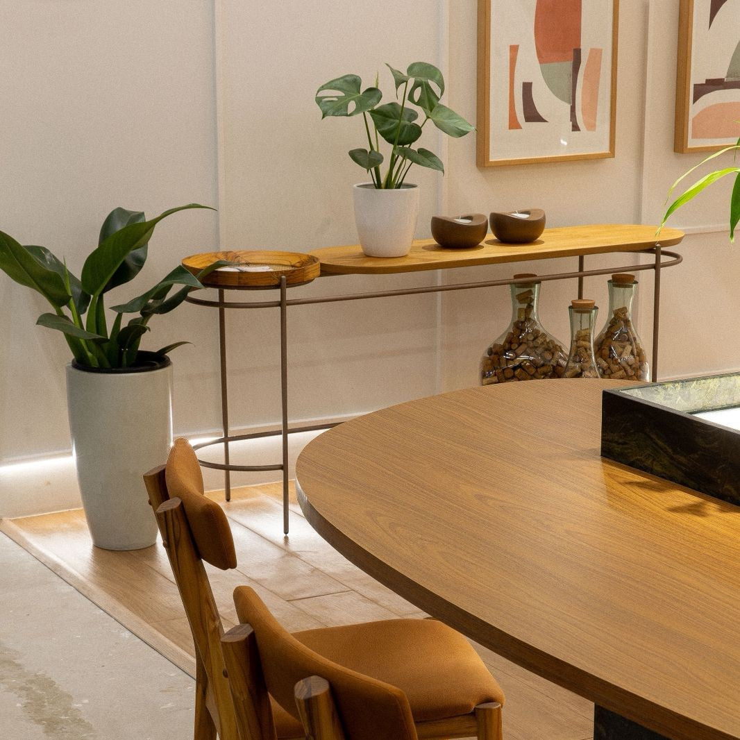 The Kora Console Table evokes the strength and grace of an embrace through its intertwined metal base—fluid yet grounded. A layered wooden top, crowned with natural cotton straw, adds texture and warmth, elevating the simplicity of its form. With its refined composition and noble materiality, Kora is a quiet statement where structure becomes sentiment, and minimalism finds depth.