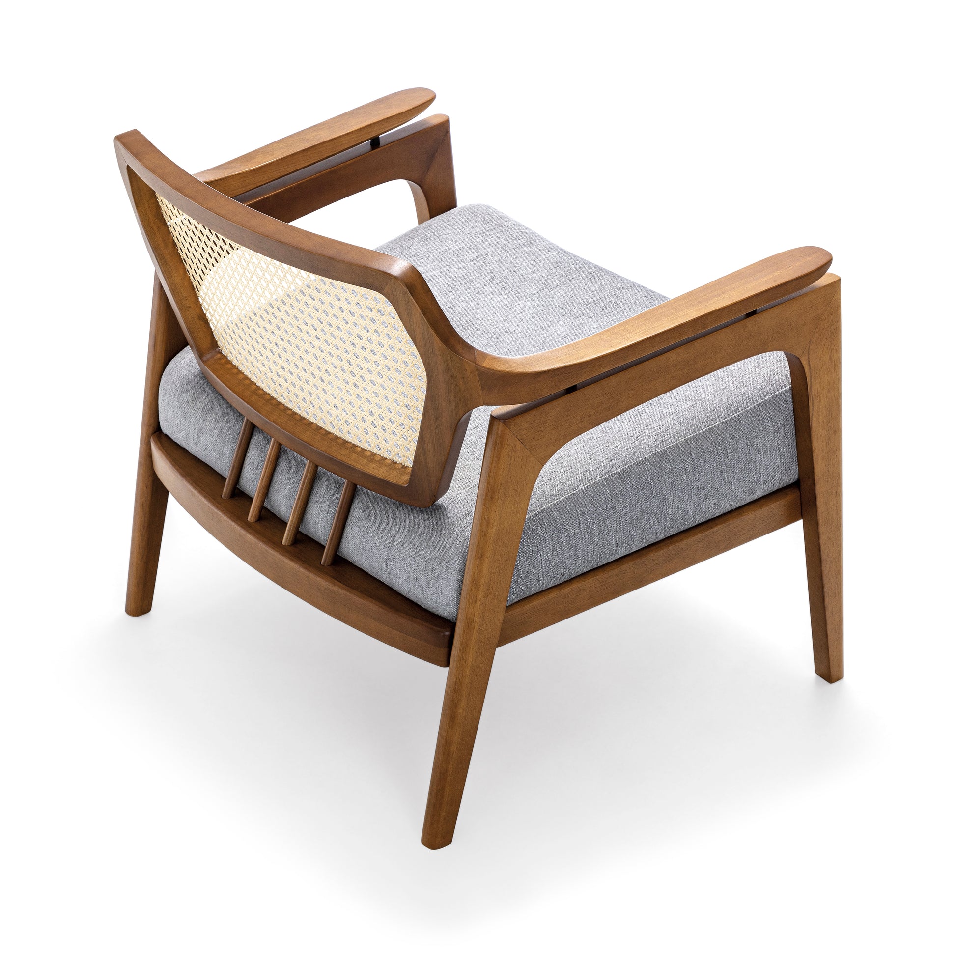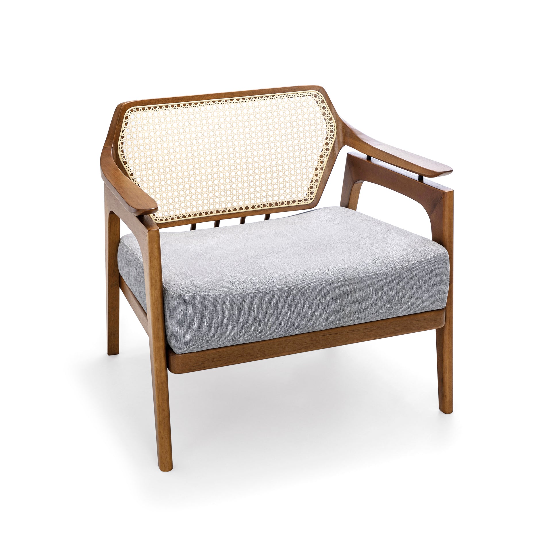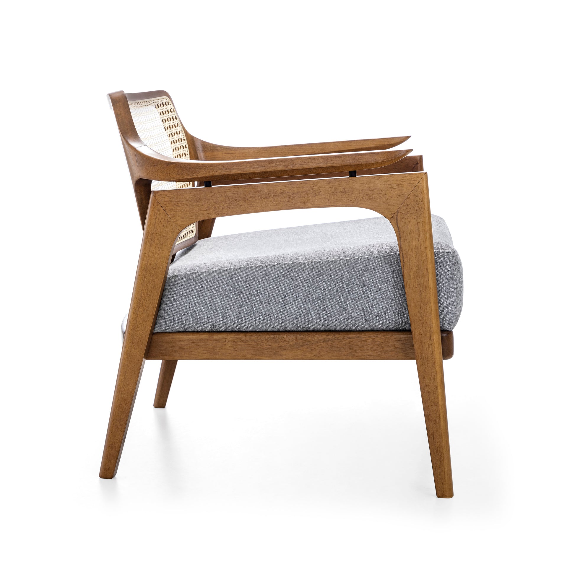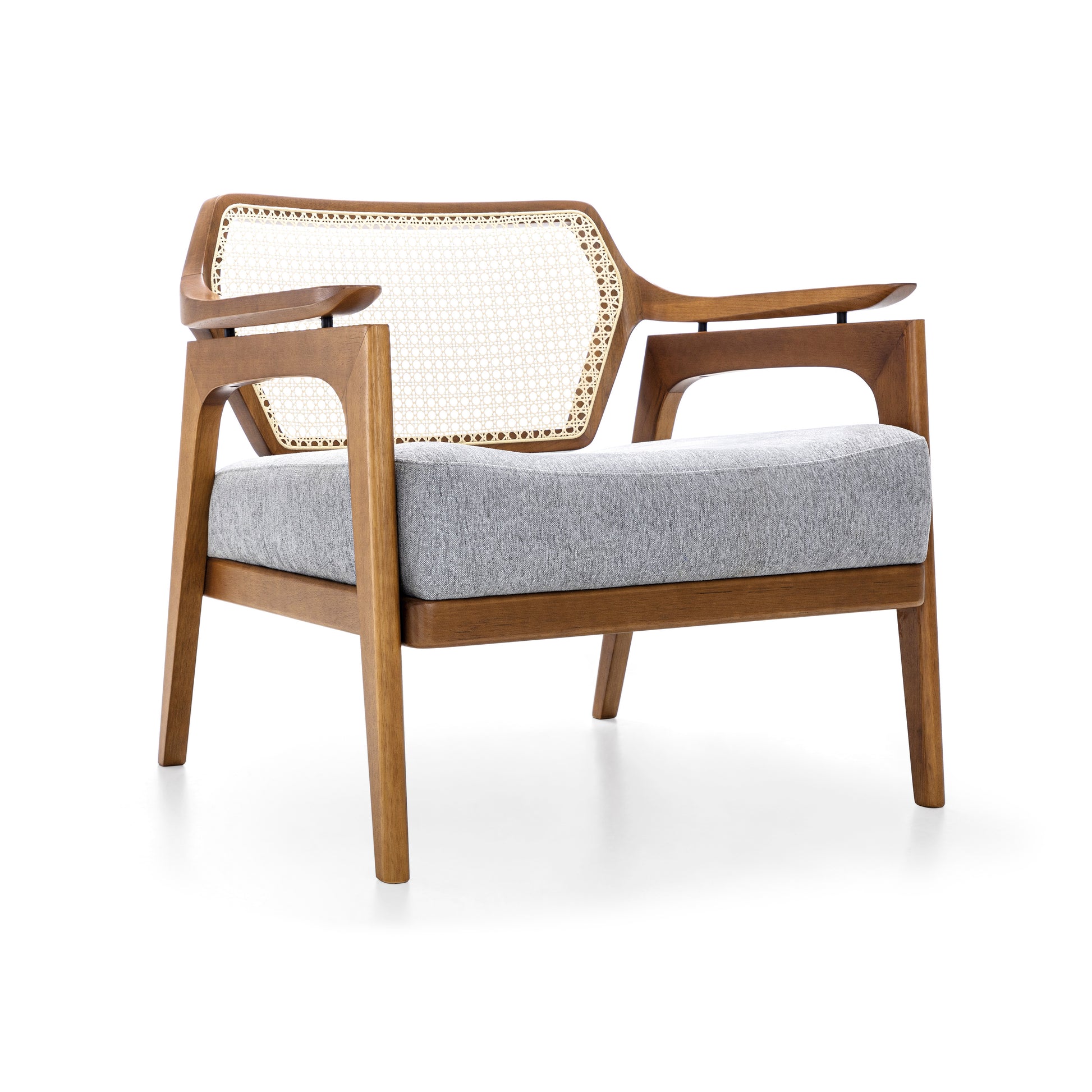 Introducing the Vanno armchair by Uultis, a distinguished Brazilian furniture company celebrated for its commitment to environmental sustainability and exceptional craftsmanship. The Vanno armchair is a perfect fusion of modern sophistication and traditional elegance, featuring a sleek black frame made from high-quality, eco-friendly materials. The armchair's standout feature is its intricately woven rattan backrest, which adds a touch of natural beauty and texture to the design.